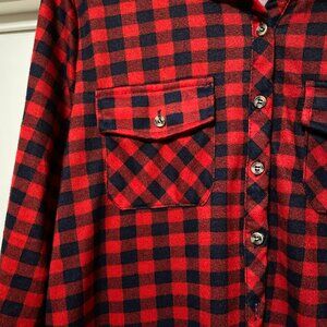 Eden & Olivia Maternity, red & black flannel stretch, button-down shirt, size 1X