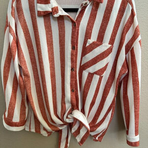 Eden & Olivia Orange White Vertical Stripe Womens Button-Up Tie-Front Shirt S