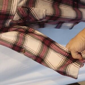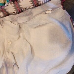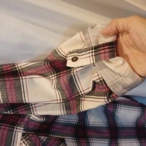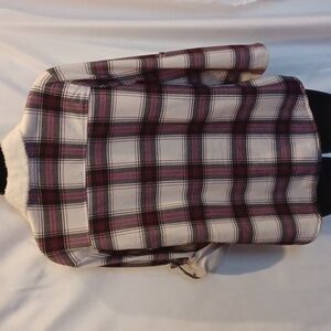 Eden & Olivia Red Plaid Knit Flannel Shacket L/S Roll Tab JrL, fleece Lined Back