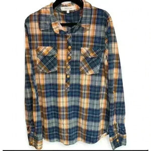 Keywords: Eden & Olivia, women's button-up, plaid shirt, fall fashion, casual wear, multicolor, long sleeve, regular fit, pre-owned, chest pockets, button-down, office wear, weekend style, versatile top.