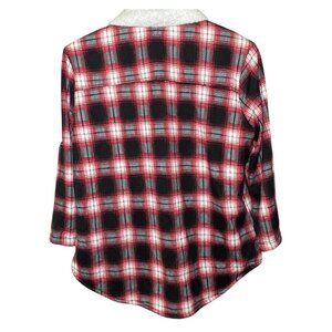 Eden & Olivia Womens Red Black Plaid Sherpa-Lined Button-Up Shirt Jacket Medium