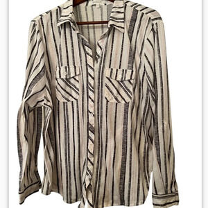 Eden & Olivia long sleeved blouse, size 3X. This striped button up is in very good condition with no stains, holes or rips
