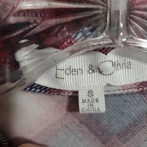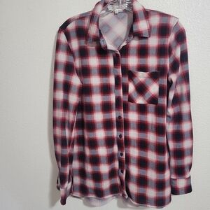 Eden & Olivia plaid button up top size small see pics for verification of size used no holes or stains or pilling measurements approximately flat lay pit to pit 19 length 26 sleeve 24