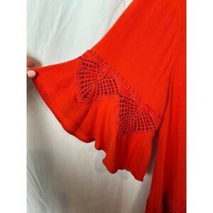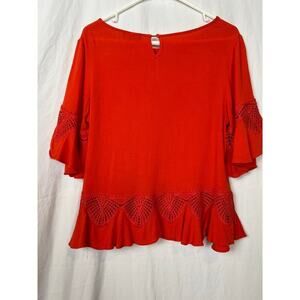 Eden Society Flutter Sleeve Short Sleeve Blouse Top Red Embroidered Women's S