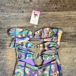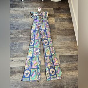 Vibrant jumpsuit featuring a playful multicolor pattern. Perfect for making a bold fashion statement.