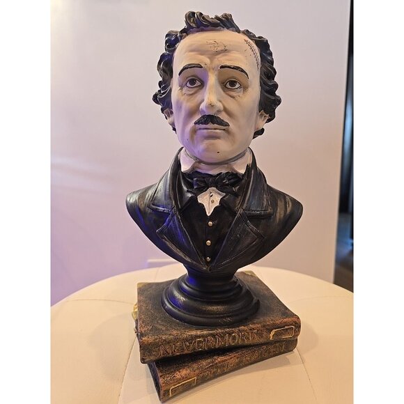 First, we invite you to check our feedback and shop with confidence. This resin bust of Edgar Allan Poe is perfect for your bookshelf in your library, living room or any area of your home that could use some whimsical charm.