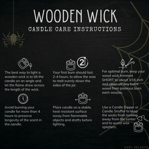 Featuring a FSC-certified clean burning wooden crackling wick in a smoky black glass jar with a metallic copper lid. Holographic label and holographic bat monogram create a cool aesthetic that catches and plays off light. (Bat monogram casts a bat signal under certain lighting angles.)