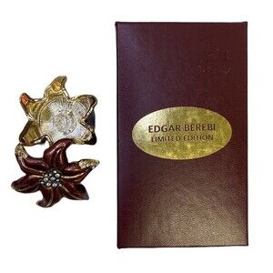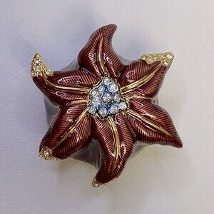 Edgar Berebi Limited Edition Enamel Lilac Pin Trinket Box & Brooch Poinssettia