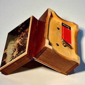 • Lovely Edgar Degas wooden music box featuring the famous 1874 oil painting “Ballet Rehearsal,” depicting two ballerinas on stage