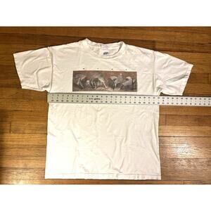 The Vintage Edgar Degas Cleveland Museum Of Art Frieze Of Dancers T-Shirt in size XL is a unique and stylish piece featuring the iconic art of Edgar Degas. This white cotton shirt with short sleeves showcases a graphic tee style inspired by the Art Deco look of the 1990s. Made by Wildwood Productions in the United States, this unisex shirt is an original reproduction that pays homage to the renowned artist and his timeless work. Perfect for art enthusiasts and collectors alike, this t-shirt is a must-have for anyone looking to add a touch of vintage charm to their wardrobe.