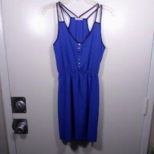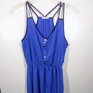 Edge Blue & Black Summer Flowy V Neck Strappy Dress Size: M