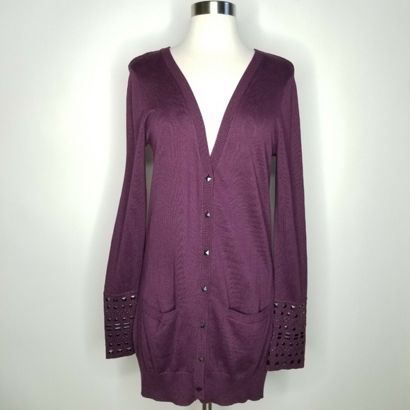 Edge Jen Rade Studded Long Sleeve Open Front Long Cardigan Sweater Purple S. Condition is New with tags.