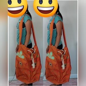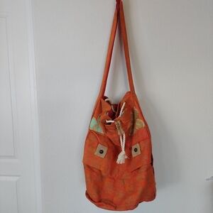 Edge Large Embroidered Bohemian Extendable Bucket Crossbody Bag.It has one big stain inside and two small ones outside. It's very large. For reference, I am 5'2. see picture 3.