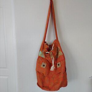 Edge Large Embroidered Bohemian Extendable Bucket Crossbody Bag.It has one big stain inside and two small ones outside. It's very large. For reference, I am 5'2. see picture 3.