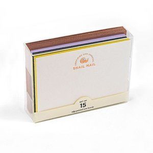 New never opened. Thick note cards. Set of 15 foil stamped letterpress cards with coordinating envelopes (color of the 'Snail Mail' foil).