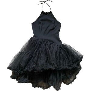 Edge Tulle Black Dress M Halter Neck Open Back Balletcore Fairy Whimsygoth Sexy
