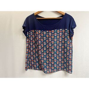 Edge Womens Short Sleeve Blouse Blue Geometric 100% Polyester Size Small