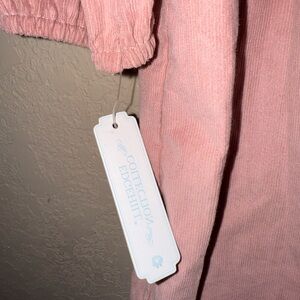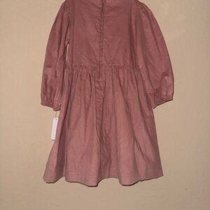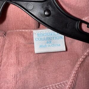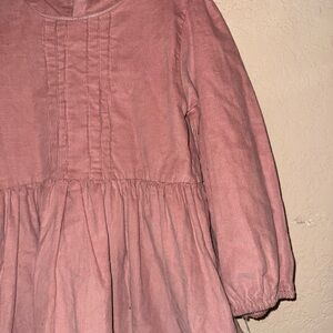 Pink corduroy dress from the Edgehill Collection. This dress features a gathered waist, a round neckline with pleats, and zipper closure at the back.
