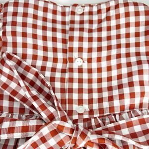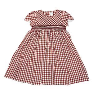 Red and white gingham plaid dress with smocked detail across the front. Buttons closure on the back with a tie detail. Dress is in like new condition and shows no signs of wear. Size: 3T.
