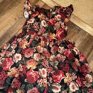 Edgehill Collection Girls Vintage Floral Red Cream Tulle Full Skirt Dress 4T. Formal, zip closure. No noted issues.