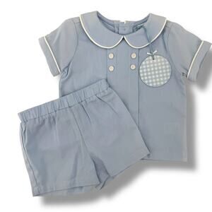 Edgehill Collection Peter Pan Collar Shirt Shorts 2pc Set Boys Sz 12 Mos Blue