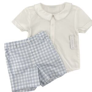 Edgehill Collection Peter Pan Collar Shirt Shorts Set Boys Sz 3T Gingham Blue