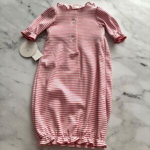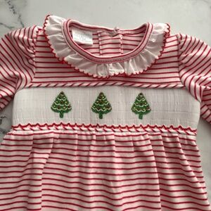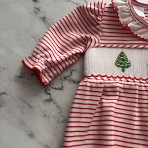 NWT 0-3 mo Christmas gown. Adorable red and white striped gown with Christmas tree smocking.