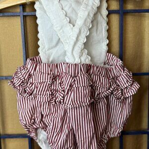 Edgehill Collection Red Stripe Ruffle Bubble Romper NB