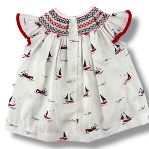 Edgehill Collection Smocked Bishop Dress Bloomers Set Sz 18 M Nautical Sail Boat