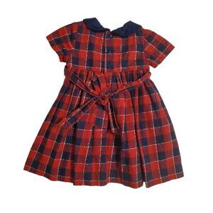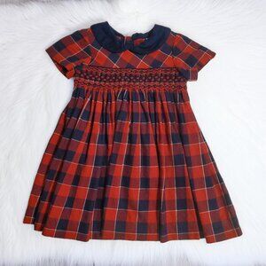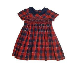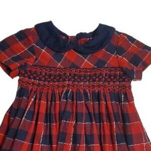 Edgehill Collection Smocked Red and Navy Plaid Dress 9m