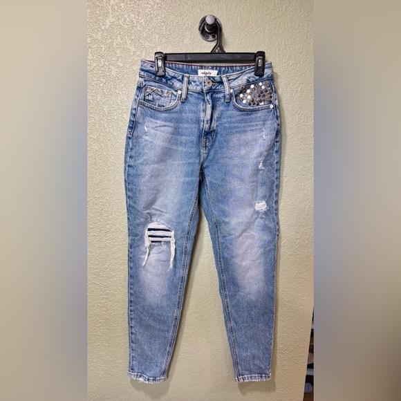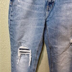 Elevate your casual look with these light blue distressed tapered jeans. Perfect for a relaxed yet chic style.