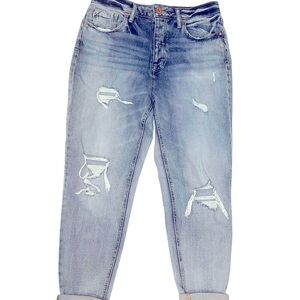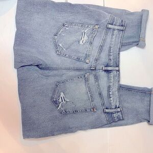 Edgely Maurice’s High Rise Mom Button Fly Distressed Jeans Women’s 12 Short. Hem is rolled