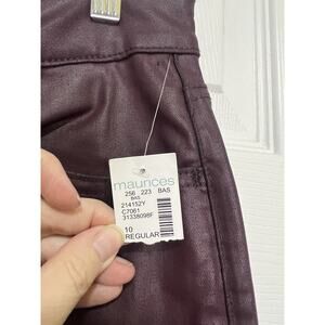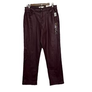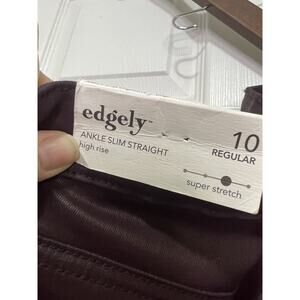 Edgely Women's Maroon/brown Faux Leather Pants Size 10 Slim Straight Ankle NWT