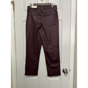 Edgely Women’s Faux Leather Pants Maroon Brown Size 10 Slim Straight Ankle High Rise NWT