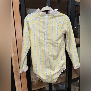 Edghill Collection one piece swimsuit rashguard toddler girl ruffle block print