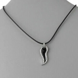 Edgy Austrian Crystal Black Enamel Pendant Rubber Cord Necklace