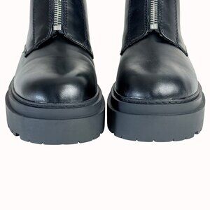 Edgy Black Combat Ankle Boots Sz 9 Chunky Lug Platform Front Zipper Biker Chick