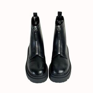 Edgy Black Combat Ankle Boots Sz 9.5 Chunky Lug Platform Front Zipper Biker Goth