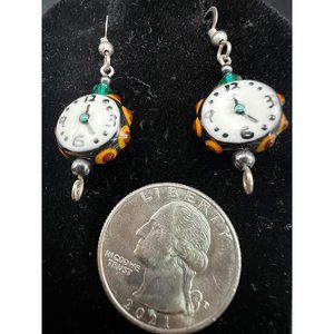 Edgy Clock dangle earrings 1.5"
