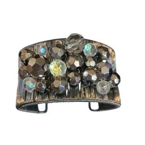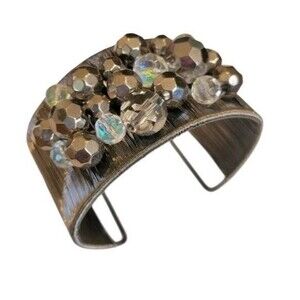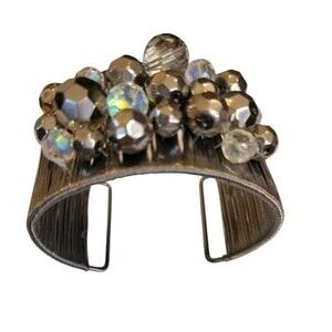 Edgy & Elegant Cookie Lee Cuff Bracelet Wide Gunmetal Wire Mesh Crystal Beaded