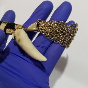 Edgy Gold Black Cord Necklace – Tassel & Faux Tooth Pendant Statement Jewelry