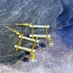Edgy rhombus diamond shape gold dangles with crystal charm drops