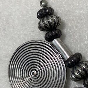 Edgy Rebel Rockstar Silver Disc Coin Whimsical Whimsigoth Swirl Black Necklace