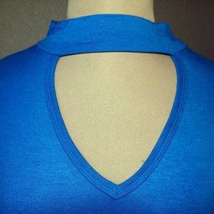 Edgy Woman's Blue WILD SPIRIT Embellished Skull Cold Shoulder T-shirt 4X NWT