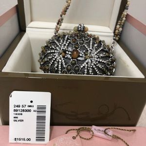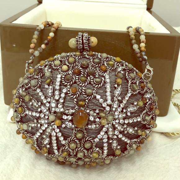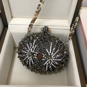 Purchased at Saks . All stones intact. Jewel tones are neutral with Swarovski stars. Beaded handle is removable as shown in pictures.
