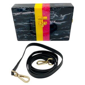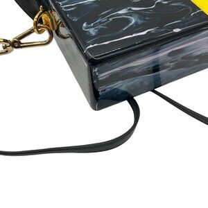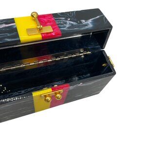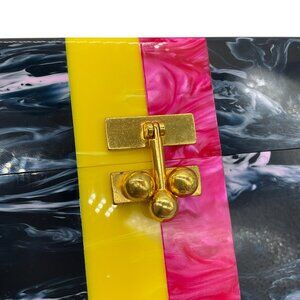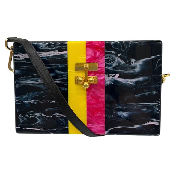 Edie Parker Navy Multi Small Trunk Vintage Stripe Acrylic Clutch