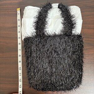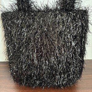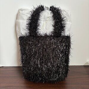 Edie Parker Weedie Mini Grass All Over Metallic Tinsel Black Tote Bag New