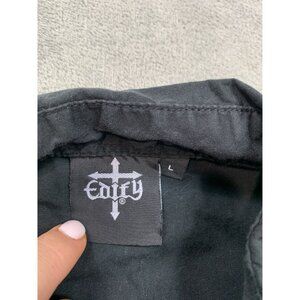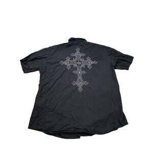 Edify Men's Large Black Button-Down Shirt With Cross Embroidery Christian Faith