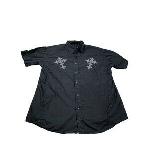 This black button-down shirt features intricate cross embroidery, providing both style and comfort. Made from 100% cotton for a breathable fit.