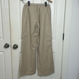 Upgrade your casual wardrobe with these beige cargo pants. Featuring a comfortable drawstring waist, these pants are perfect for everyday wear. 100% cotton. New without tags.